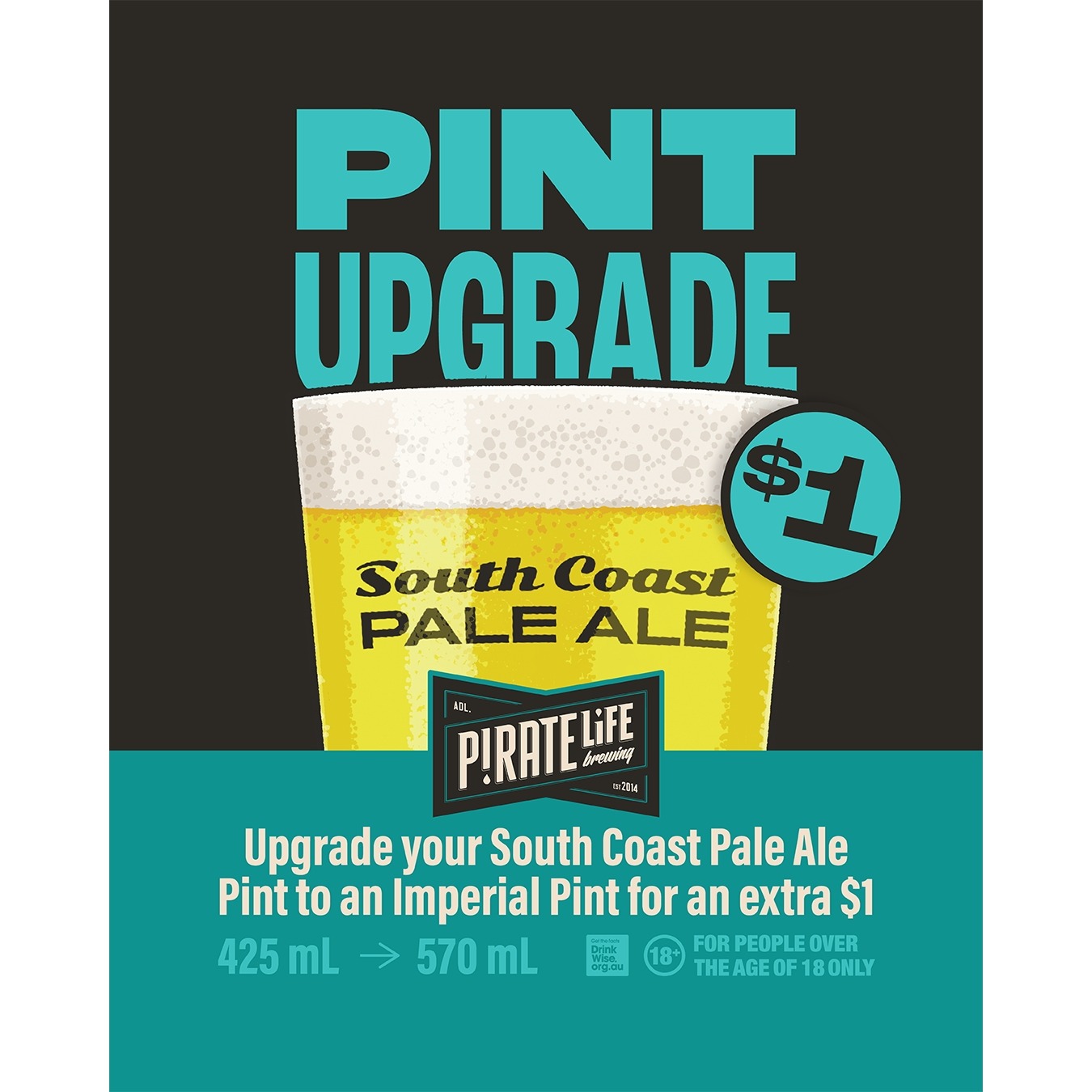 Upgrade your South Coast Pale Ale Pint to an Imperial Pint for an extra $1