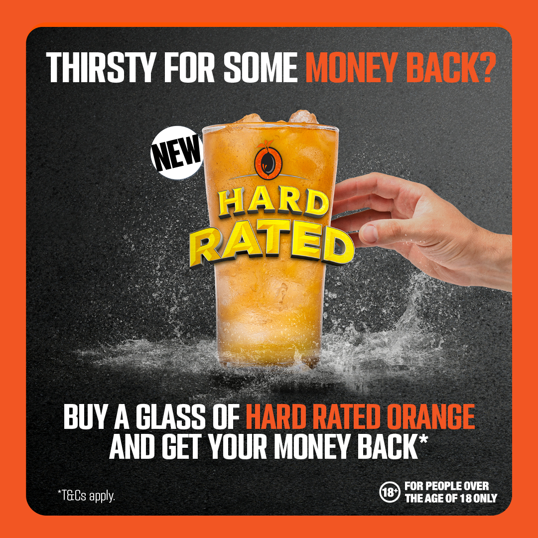 Thirsty for some money back? Buy a glass of Hard Rated Orange and get your money back*